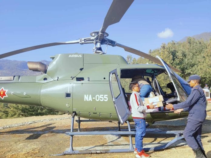 नेपाली सेनाको हेलिकप्टरमार्फत निर्वाचन सामग्री आइपुग्यो, फागुन २१ को मतदान तयारी तीव्र